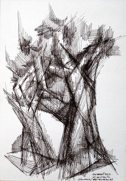 13 - Sobreiros, 1987 - nanquim - 22x29 cm.   14 - Barcos I, 1988 - guache - 40x30 cm.   15 - Barcos II, 1988 - nanquim e aguarela -220x29 cm.
