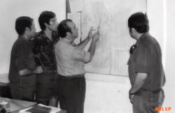 90. Na secretaria a consultar os mapas antes de uma saída.
