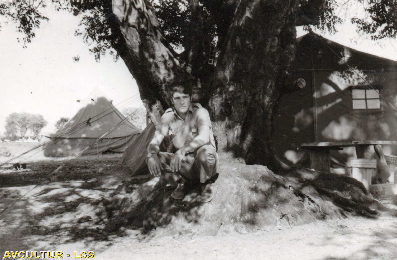 9. À sombra de uma árvore. Ao fundo, as tendas do pessoal.