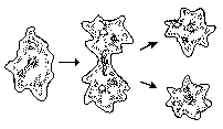 a) - Divisão binária = bipartição = cissiparidade - ocorre em seres unicelulares (exs. bactérias, Amiba, Paramécia. etc.) que, por divisão mitótica, originam dois seres do mesmo tamanho.
