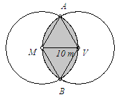 O conjunto dos pontos correspondente a intersecção de dois círculos de raio 10 m e cujos centros distam 10 m.