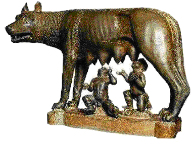 abandonados junto ao rio Tibre e salvos por uma loba, que os