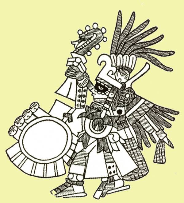 O seu nome significa 'o feiticeiro colibri'. Exigia o sacrifício de