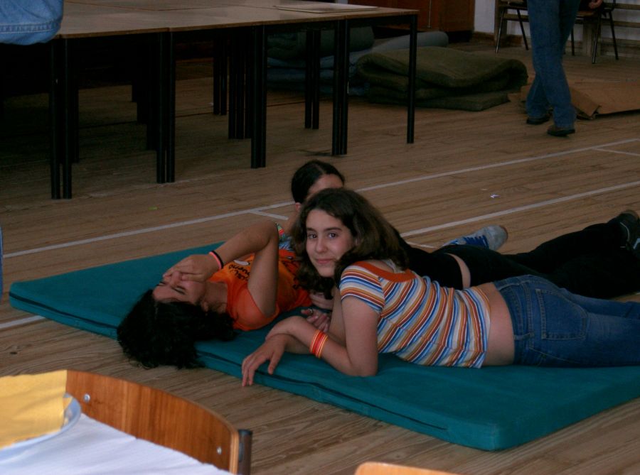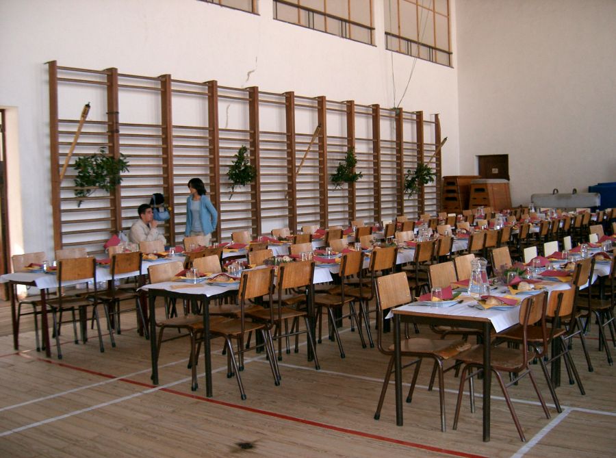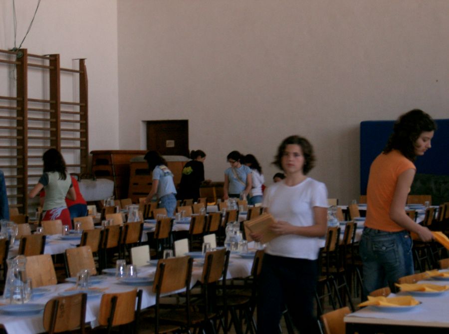 | Jantar romano: imagens de Marisa e Joana. - Arranjo da sala e... decurso do mesmo.
