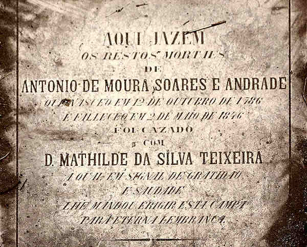 8 - Lápide da campa de António de Moura Soares e Andrade, falecido em 2.5.1846, existente no centro da igreja, mandado fazer por sua esposa.