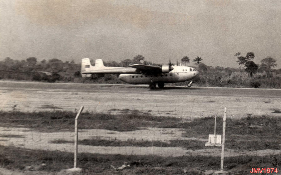 Aterragem do avião militar Nord Atlas na pista de Aldeia Formosa.