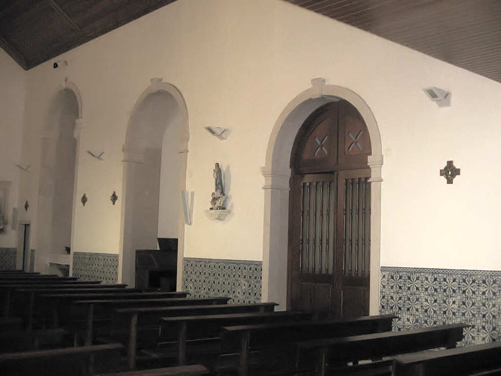 fundo da Igreja e do lado direito, a capela com a pia baptismal.