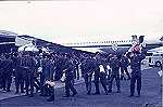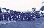 Desembarque no aeroporto de Lisboa da 3ª Companhia do Batalhão de Caçadores 4511. Última fotografia de despedida dos elementos da Companhia.