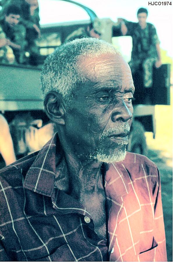 Um dos habitantes de Bange Angola que nos pediu que o fotografássemos. Henrique J. C. de Oliveira - 10/04/1974. Ficheiro: Bange12.jpg - 108 KB