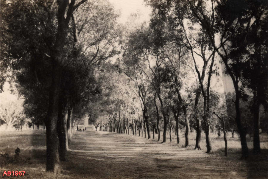 Militares e civis da oficina militar junto ao monumento do Batalhão de Caçadores 1876.
