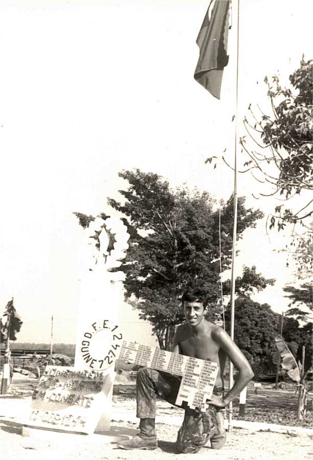 António Vieira, 4º oficial do Destacamento de Fuzileiros Especiais 12 com a «Chave de Honra» do DFE 12, em CAfine Balanta, na Guiné.