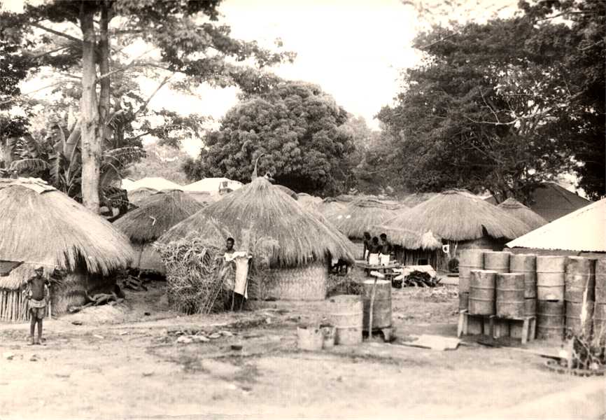 Tabanca de nativos em Cafine Balanta, na Guiné-Bissau, entre 1974/74.