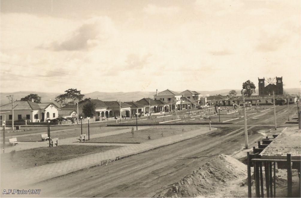 Fase da construção das avenidas centrais, jardins, igreja e clube de Camabatela (canto inferior direito).