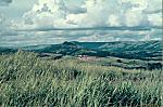 Aspecto da paisagem a seguir a Camabatela em direcção a Luanda, vendo-se ao longe uma povoação.