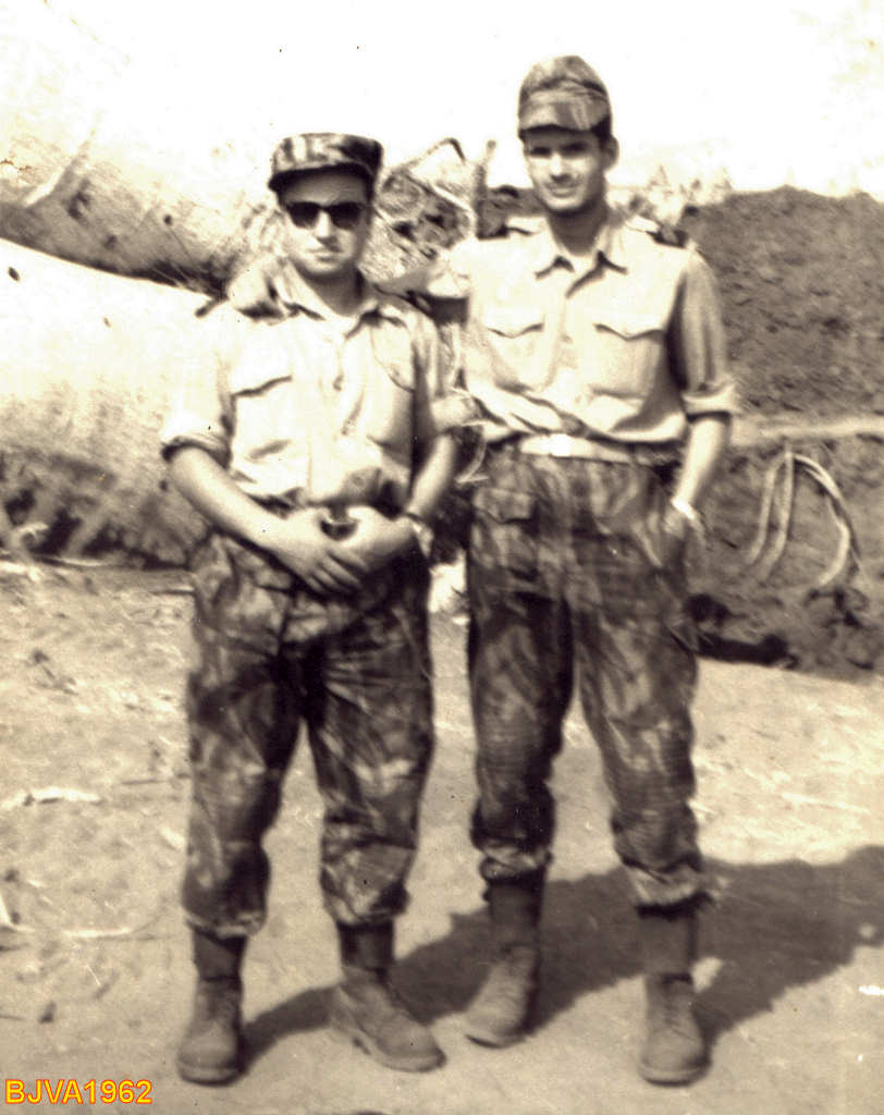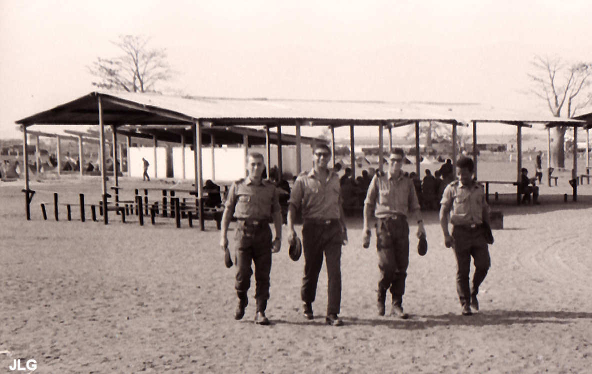Primeiro dia no Grafanil, na data do desembarque em Angola, em ?? de ?????? de 196?. Da esquerda para a direita:  Fur.Mil. Levi; Fur.Mil. Henrique; Alf. Mil.Vaz; Fur.Mil. Ulisses.