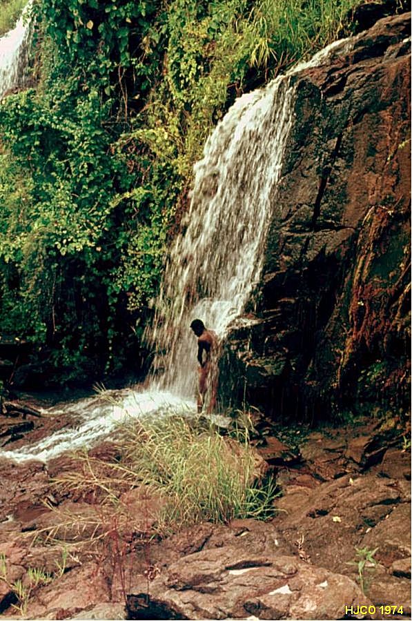 Tomando um chuveiro natural. Quedas Guilherme, no rio Cuango, entre o Zaire e Angola.