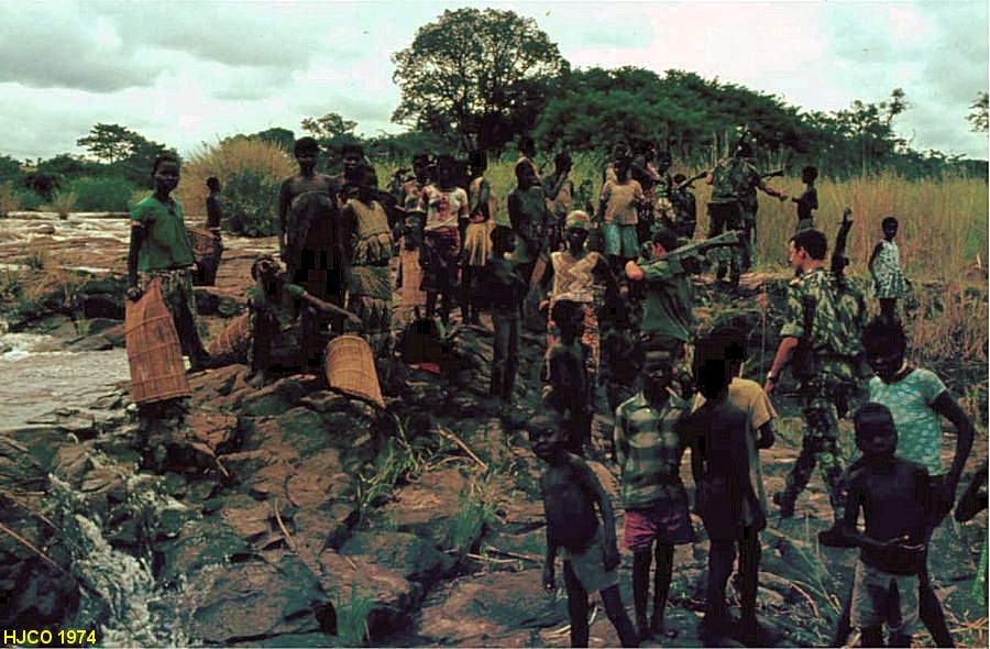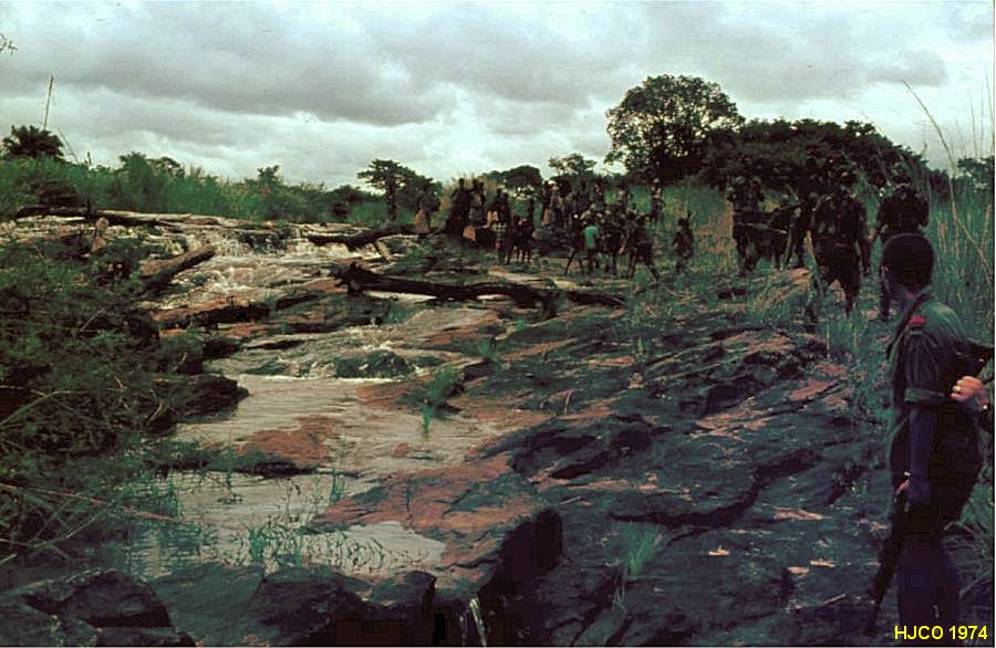 Junto às Quedas Guilherme, no rio Cuango, entre o Zaire e Angola.