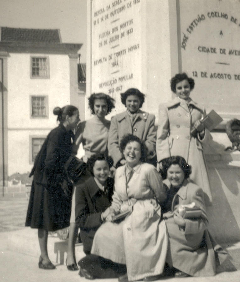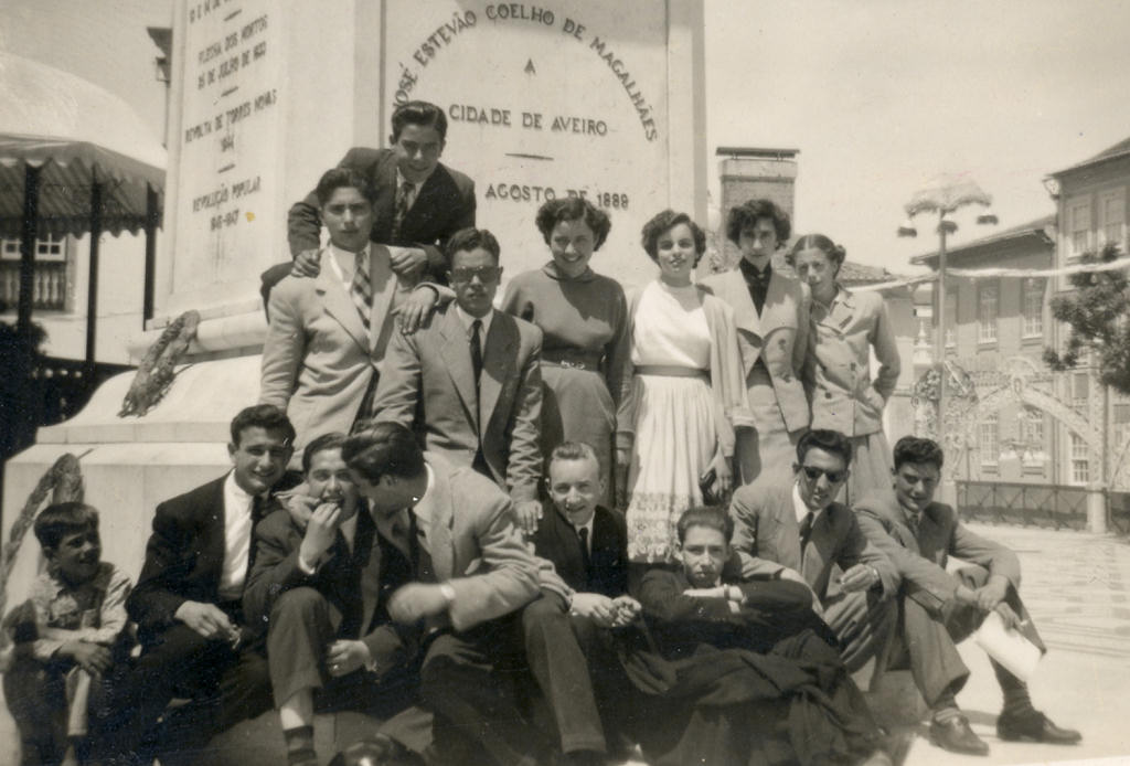 11 - Alunos do Liceu de Aveiro junto ao monumento a José Estêvão. Ver NOMES. Foto 6x9 cm de Rogério Leitão.   12 - Alunos do Liceu de Aveiro junto ao monumento a José Estêvão. Ver NOMES.