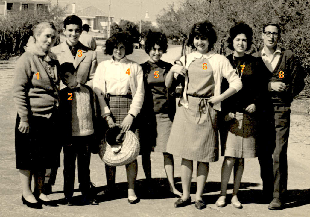 NOMES: 1. Srª Noémia, cozinheira da cantina; 2.???; 3.Eduardo Manuel Freire Marques de Sá; 4.Maria Fernanda Saraiva Tavares; 5.Maria Luísa Borrego Moutinho; 6.Ni; 7.Maria Clara de Lima Figueiredo; 8.António Manuel Vieira da Silva.