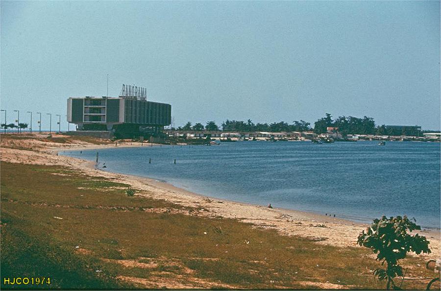 Aspecto de Luanda como se vê da ilha, tendo à esquerda o porto comercial e a Alfândega.