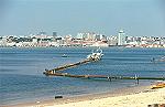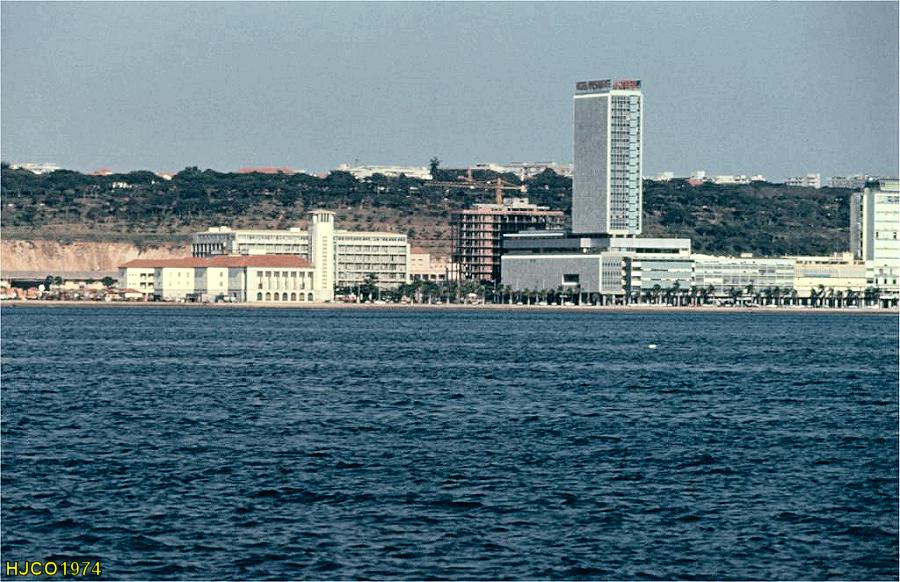 Aspecto de Luanda como se vê da ilha, tendo à esquerda o porto comercial e a Alfândega. Imagem obtida com teleobjectiva.