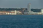 Zona do porto comercial e alfândega. Vista da ilha de Luanda utilizando uma teleobjectiva.