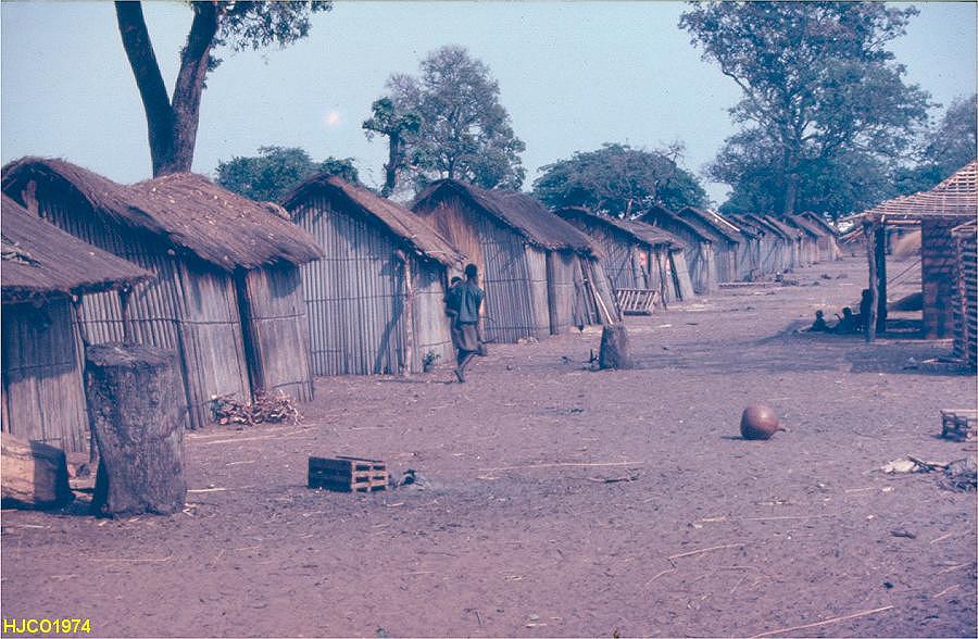 Aspecto da Sanzala de Mangando, sendo de destacar o perfeito ordenamento rectilíneo da cubatas. (Slide refª 1000).