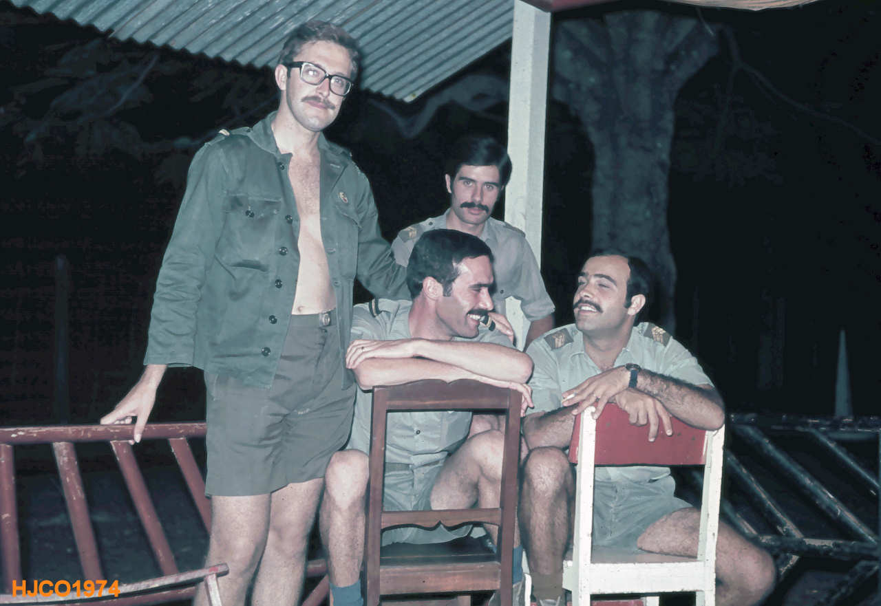 Momento de descanso. Da esquerda para direita: (Em pé) Alferes Oliveira e furriel Santos; sentados, Alf. Valle e furriel Rocha.