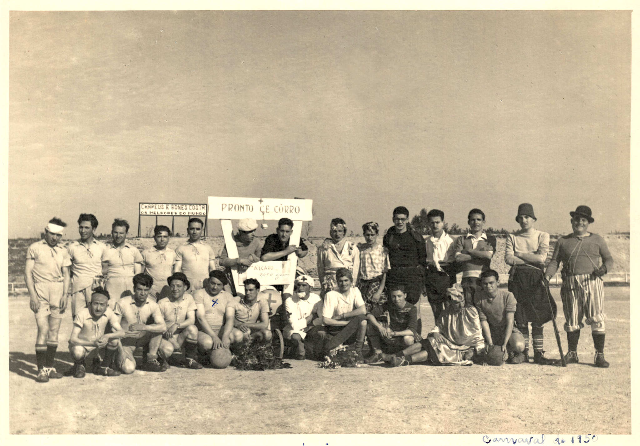 1. Jogo de Carnaval em 1950. Por esta altura, um grupo de foliões efectuava um desafio de futebol no estádio Mário Duarte devidamente mascarados.