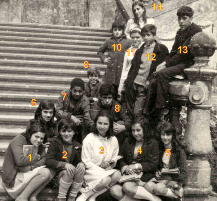 1.-Em baixo: Zé Augusto; Domingos; Troia; Fátima. Em cima: Isabel; Júlia; Profª Ana Maria; Luísa; Ana.