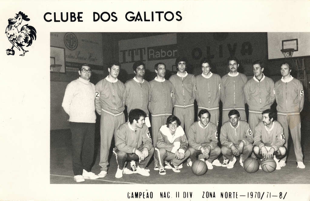 1. Equipa de iniciados do Clube dos Galitos (Basquetebol), época 64/65, campeã regional, tirada nas escadarias do Parque da Cidade. Fotógrafo desconhecido.
