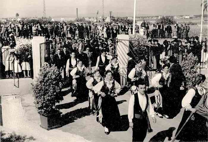folclóricos no momento da entrada pelos portões da nova escola. |