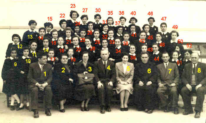 14.Lucília Jorge; 14.Ádria Goucha Jorge; 15.Marina Mota Pinto; 16.Apolinária Carapeto; 17.Mª do Carmo Junqueira; 18.Deolinda Quitéria; 19.Rosa Alice; 20Mª Augusta Conde; 21.Isabel Freitas; 22.Fernanda Beja; 23.Lina (Socer); 24.Mª Adosinda Veloso; 25.Clara Pessanha; 26.Esmeralda Anastácio; 27.Helena Albernaz Otto; 28.Lurdes Silva; 29.Irene Rosa; 30.Teresa Magno; 31.Laura Valente; 32.MªLuísa Nogueira; 33.Helena Monteiro; 34.Mª Emília Costa; 35.Glória Gaspar Portela; 36.Mª Luísa Goucha; 37.Ilda Silva; 38.Benvinda Pedrosa; 39.Mº Ferreira; 40.Odete Vital; 41.Virgínia; 42.Esmeralda Simões; 43.Violette; 44.Rosa Lagoa; 45.Celeste Laureano; 46.Josefina Dias; 47.Manuela Vital; 48.Isabel Tavares; 49.Teresa Ramos; 50.Ofélia Vital; 51.Adelina Natália de Sousa; 52.Regina Serra da Gama.
