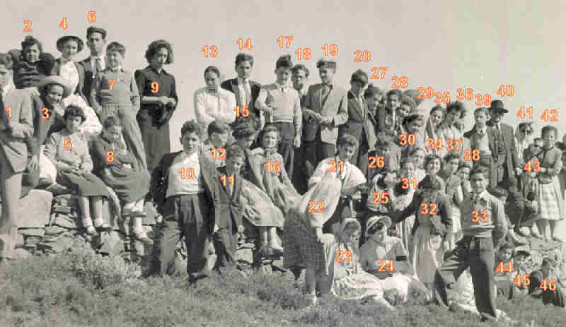 1.Lucília Jorge; 2.Rosa Lagoa; 3.Ádria Goucha Jorge; 4.João Aires Mora Leitão; 5.Sérgio Brito e José Pedrosa; 6.Marina Mota Pinto; 7.???; 8.Fernando ...; 9.Madalena Varela; 10.???; 11.Mª Emília Costa; 12.Esmeralda Anastácio; 13.Fernando Raimundo; 14.Armindo Portela; 15.Teresa Magno; 16.José Castelão; 17. Augusto Leal (?); 18.Ilda Silva; 19.???; 20.Benvinda Pedrosa; 21.Manuela Vital; 22.???; 23.Deolinda Quitéria; 24.Glória Portela; 25.Odete Vital; 26.Helena Jorge; 27.Celeste Laureano; 28.Laura Valente; 29.???; 30.Amadeu Eusébio; 31.???; 32.???.