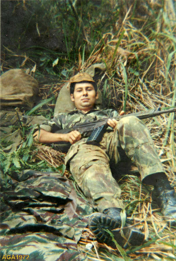 António Gonçalves Araújo da Companhia de Caçadores 3387 num momento de pausa durante uma operação.