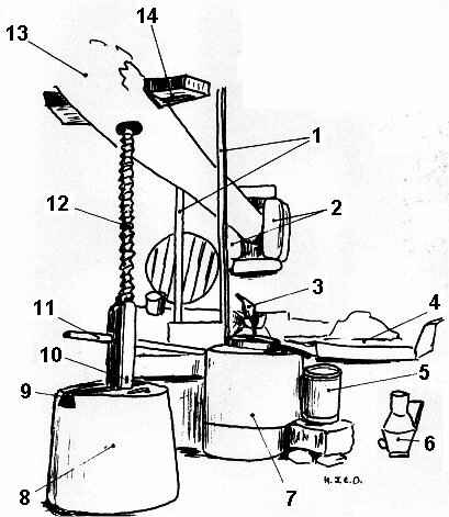 Legenda: 1-prumos da vara; 2-virgens; 3-tampão