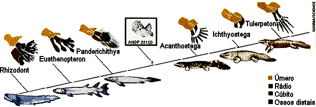 Anfíbios. A configuração do úmero desses peixes, comparada com os das
