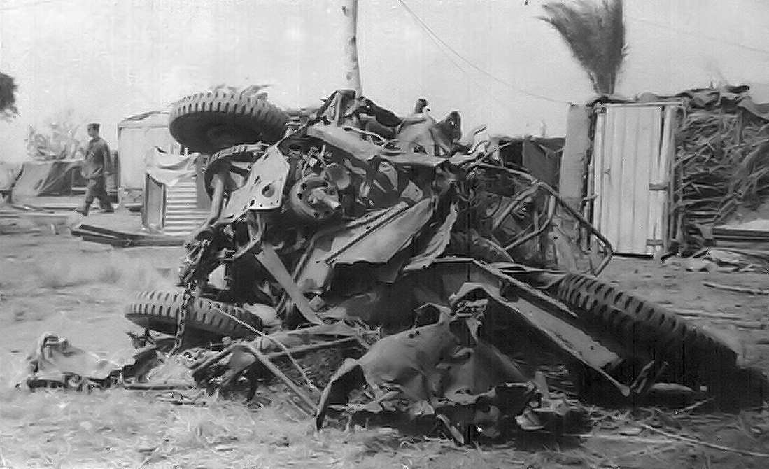 passado: o jipe que vinha à frente da coluna pisou uma mina anti-carro.