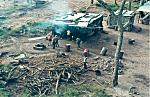 Quase todos os dias saíam grandes tabuleiros de pão fresco, para reabastecimento na apenas do quartel do Alto Zaza, mas também dos destacamentos, cujos elementos aqui vinham regularmente reabastecer-se, com excepção da Camuanga, onde o Velho Manel construiu um forno para evitar as demoradas e perigosas deslocações. (slide refª 63). Ficheiro: AZaza066.jpg - 94 KB