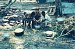Descascando as batatas para preparação da refeição, durante o período de tempo em que a cozinha esteve provisoriamente instalada na zona ao lado da pista de aviação. (slide refª 61).
