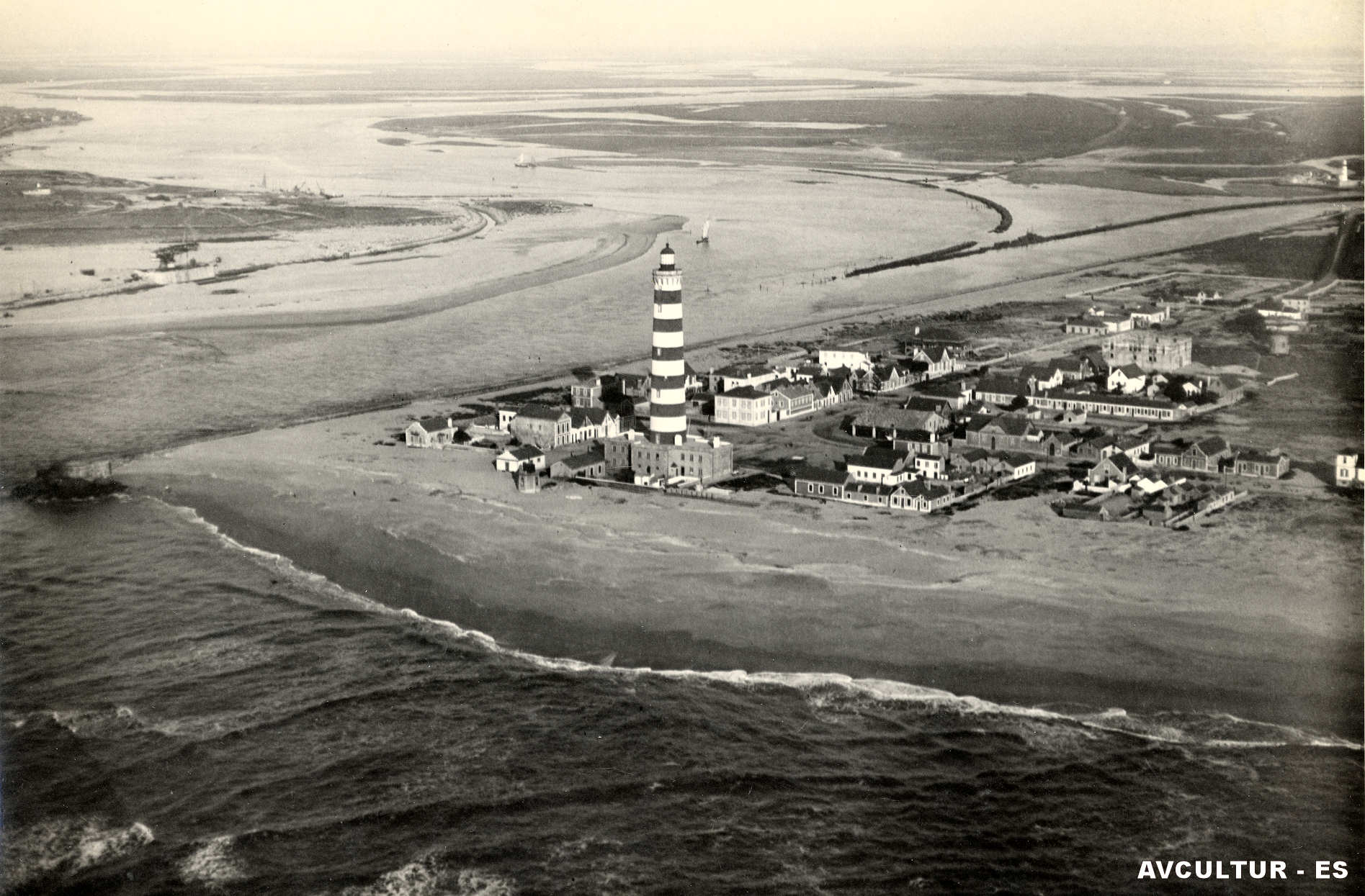 Aveiro. Vê-se o farol e a costa e é sob todos os