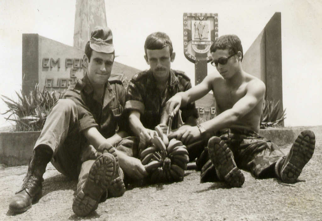 Descanso após uma patrulha na zona. Da esq.ª para a dtª: ???, ???, ??? , ???  e ???.