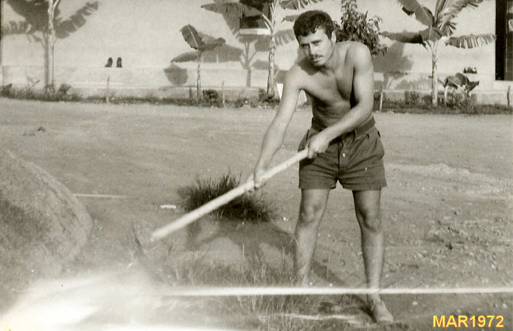 Durante o trabalho de capinar o quartel, isto, eliminar o capim para deixar o terreno livre.