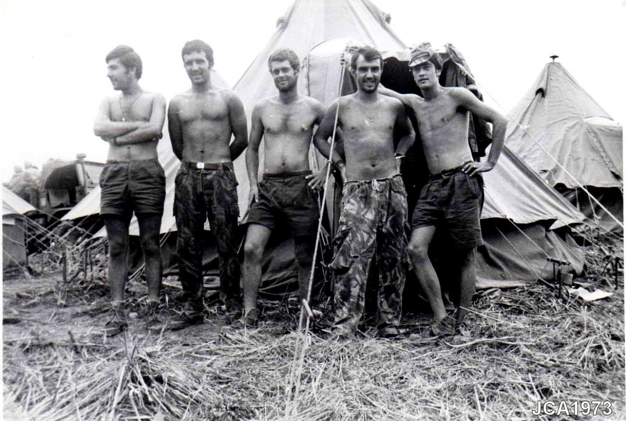Equipe de transmissões da Companhia de Caçadores 3388, do Batalhão de Caçadores 3848. da esquerda para a direita: ???; ???; ???; ???; ???.