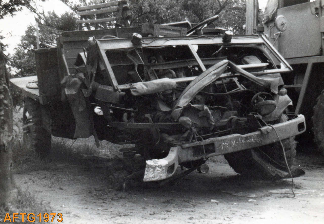 Estado em que ficou uma viatura após accionamento de uma mina.