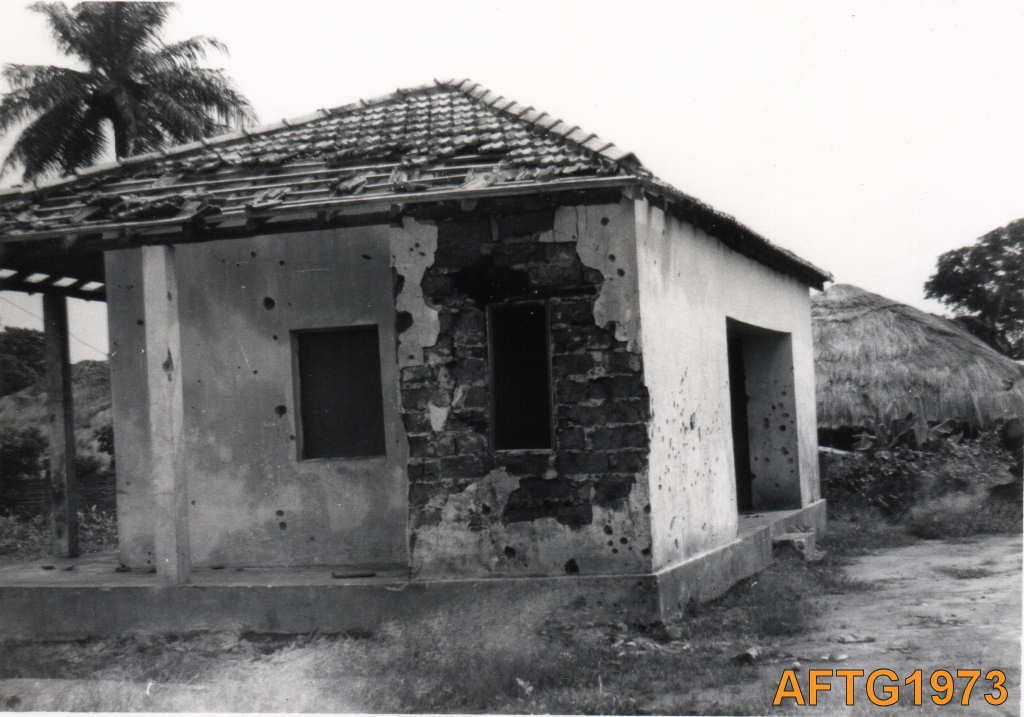 Estado em que ficou uma casa após um ataque inimigo.