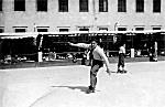 Esta fotografia, com as dimensões de 6,5x9 cm, tem a particularidade de mostrar o ringue de patinagem situado junto à praia e o prof. Henrique de Oliveira, autor de algumas imagens apresentadas nesta galeria sobre Espinho.