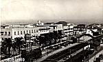 Aspecto da passagem de nível e começo da Rua 19, vendo-se, à esquina, o Café Moderno. Foto datada de 1952 em formato postal com as dimensões 8,5x13,5 cm.  Postal ilustrado editado na época.