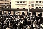 Recepção à chegada do combóio em Espinho. Fotografia em papel creme com o formato 6x10 cm.