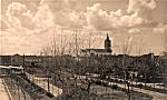Aspecto de Espinho na primeira metade da década de 1950, vendo-se o parque e a igreja matriz. Fotografia tirada da janela do primeiro andar da Escola Primária n.º 1.